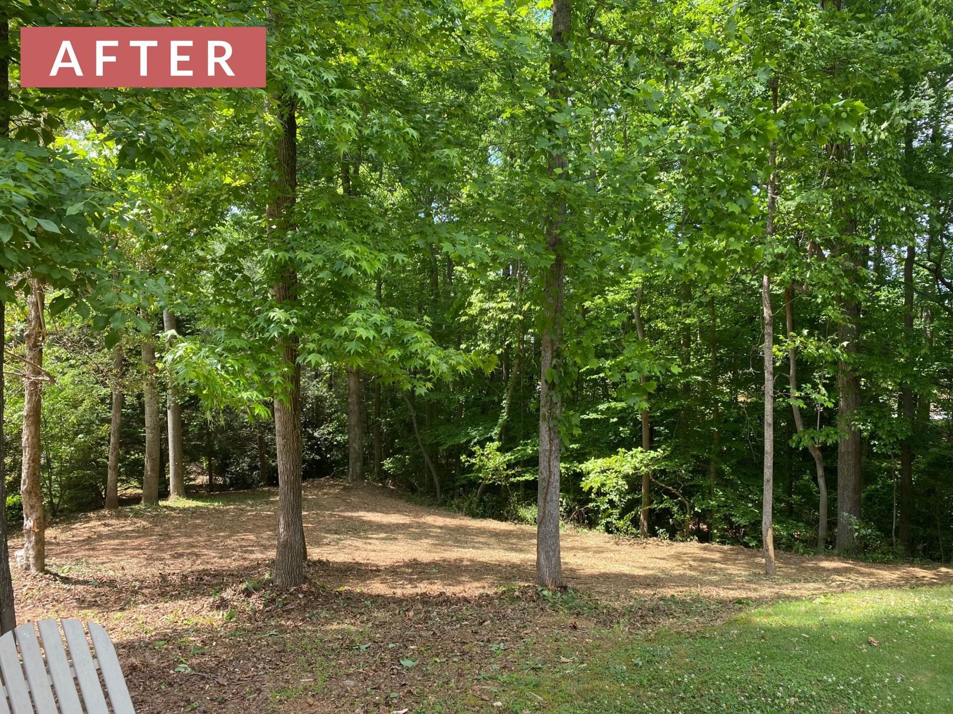 Black silhouettes of three evergreen trees on a curved ground against a white background.